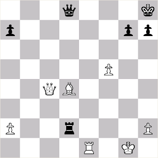 1. g8V+, H:g8 2. h7 amennyiben sötét a huszárt üti, 3. h8V , vagy 2...., Kg7 lépésre 3.h:g8V+ és sötét elvesztette a csatát a gyalogokkal szemben.