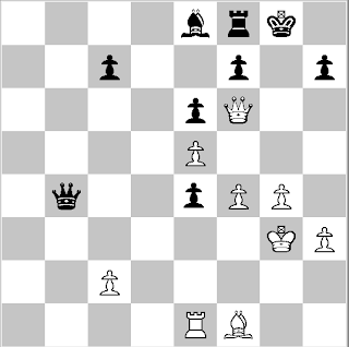 Világos kezd és örökös sakkal, a g5 és f6 mezőn, vezérével a döntetlent biztosíthatná, de ő nem akar sem döntetlent, sem tempót veszíteni az e1 bástya védelmével , inkább a következőt lépi meg: